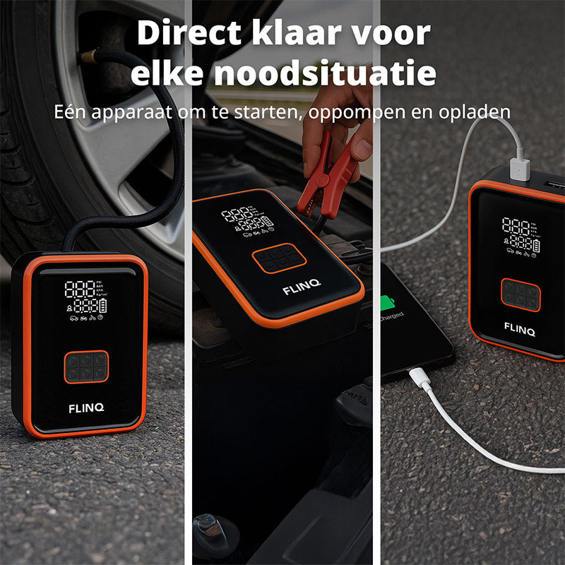 FlinQ 2-in-1 Jumpstarter & Aircompressor – Krachtige hulp bij pech onderweg