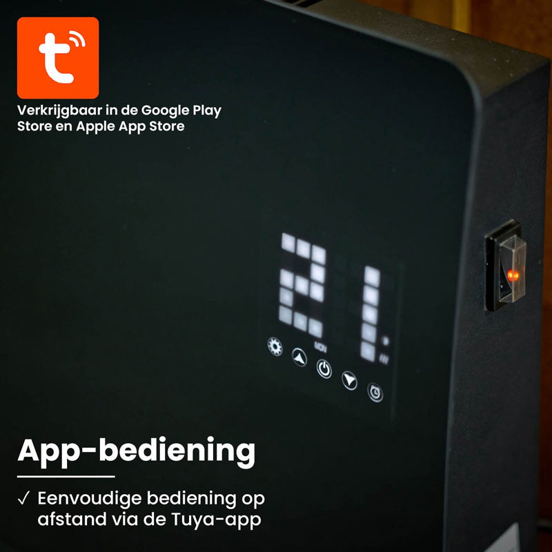 Het QLT Curved Verwarmingspaneel biedt niet alleen een luxe uitstraling, maar ook slimme functionaliteit. De ingebouwde thermostaat zorgt voor een constante temperatuur, terwijl de antivriesfunctie voorkomt dat de kamer te koud wordt. Met de app-bediening regel je eenvoudig de temperatuur vanaf je smartphone – waar je ook bent!
