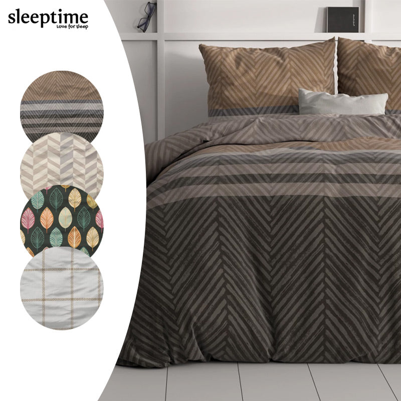 Geef je slaapkamer een stijlvolle en comfortabele uitstraling met de Sleeptime dekbedovertrekken. Deze collectie combineert kwaliteit met design, zodat je elke nacht geniet van optimaal slaapcomfort. Verkrijgbaar in diverse prints en kleuren zoals Vasco wit, Karel zand, Oscar multi en Ezgi bruin. Zo is er altijd een stijl die perfect aansluit bij jouw interieur.