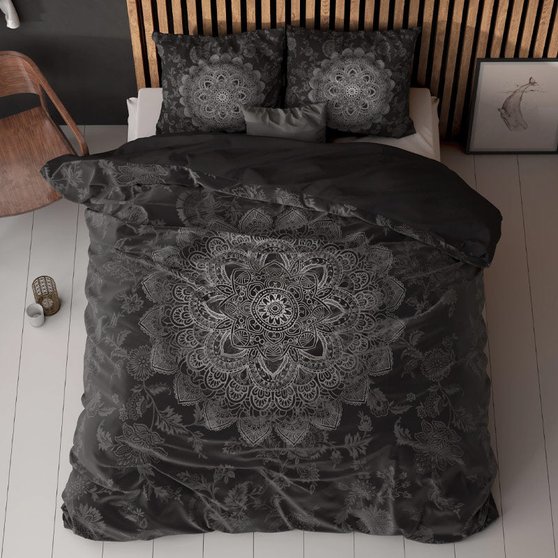 Een stijlvol en modern overtrek met subtiele patronen in antraciet tinten. Geeft een rustige, luxe uitstraling aan elke slaapkamer.