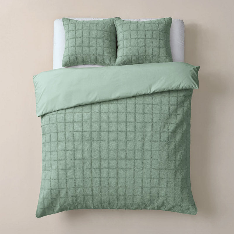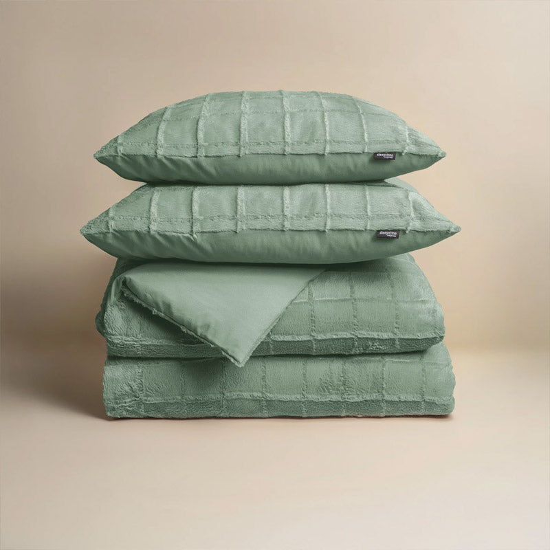 Sleeptime Faux Fur Check Dekbedovertrek – Groen, Taupe, Zwart & Beige