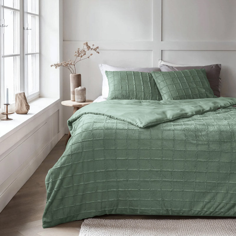 Faux Fur Check Dekbedovertrek – Groen, Taupe, Zwart & Beige