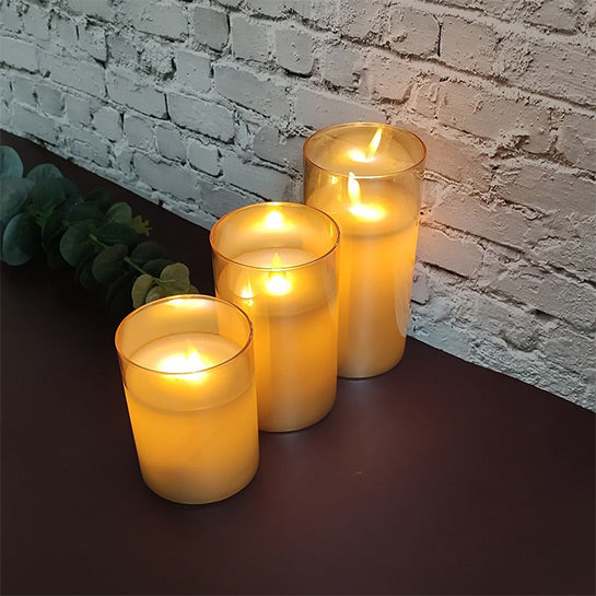 Smoked Glass LED Candle – Verkrijgbaar in Zilver en Goud